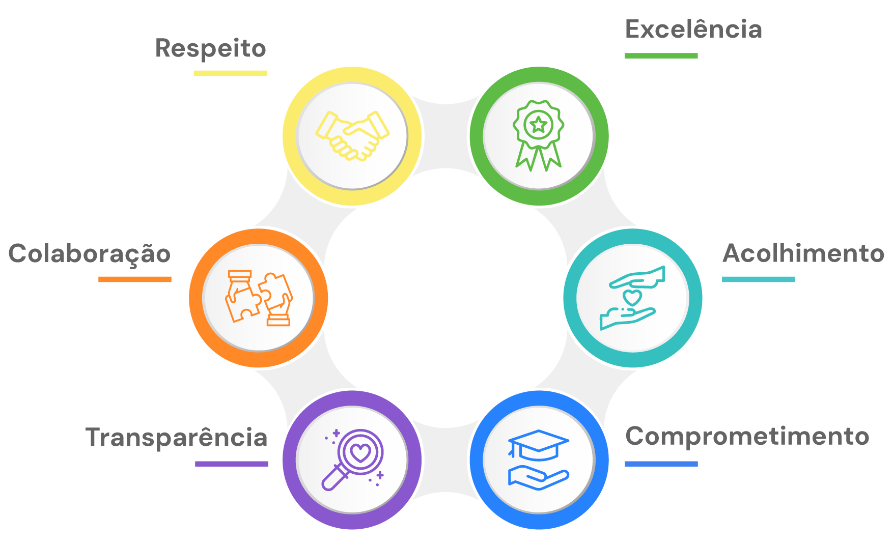 Compromisso com a qualidade em todas as áreas. Superando expectativas por meio da melhoria contínua, inovaçáo e entrega para toda a comunidade escolar.